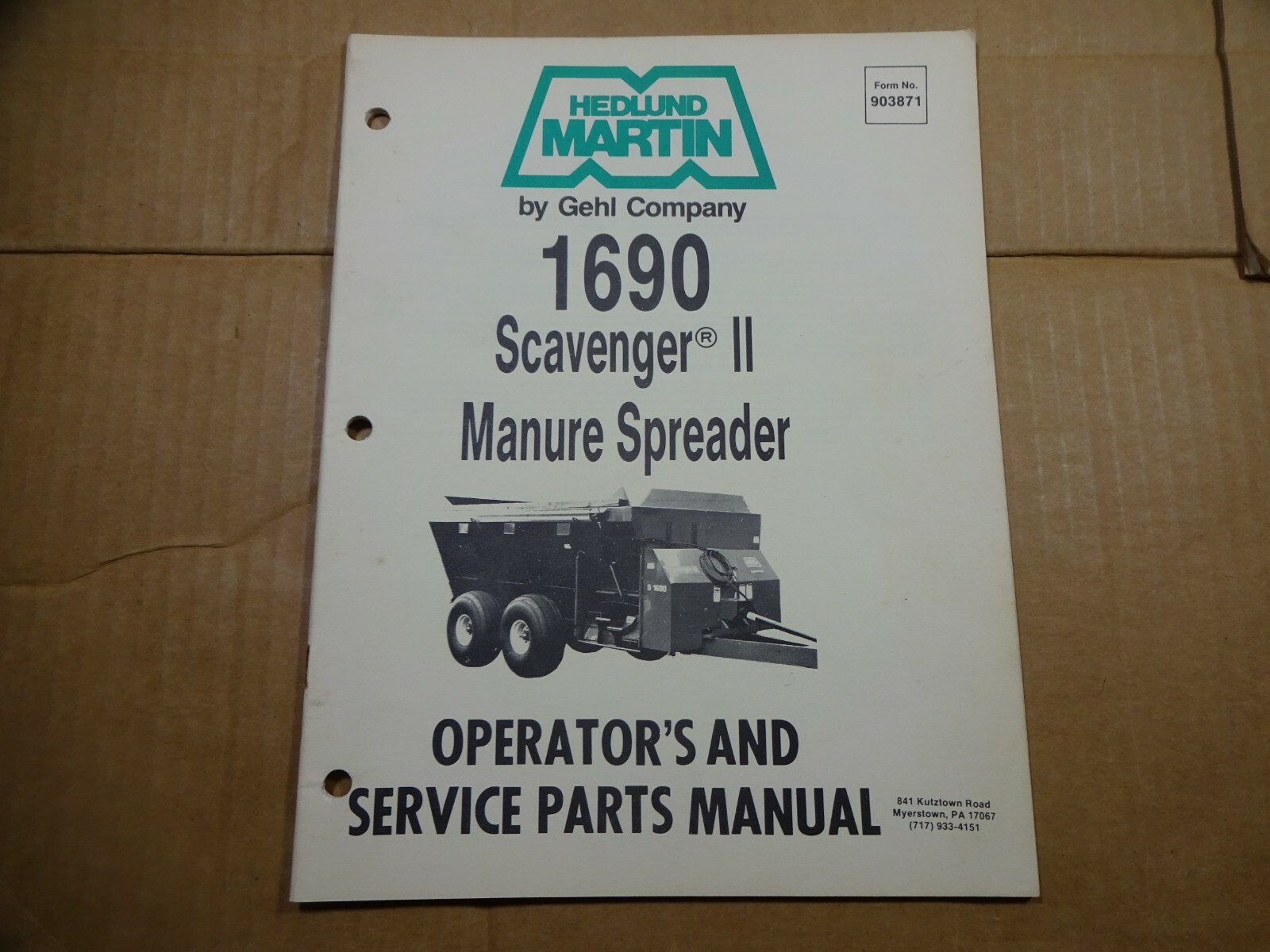 Hedlund Martin 1690 Scavenger Ii Manure Spreader Parts Operators Manual 7 87 Ebay